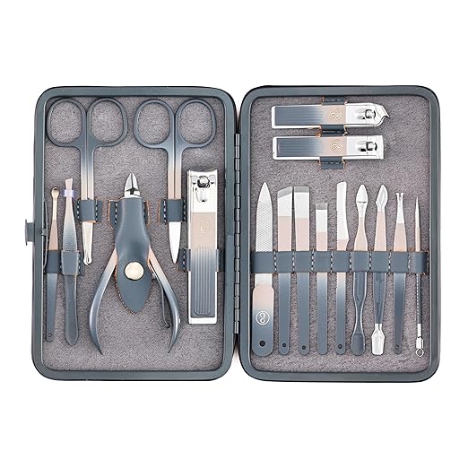 Manicure Pedicure Kit with Case ? Stylish travel-ready leather case keeps all tools hygienic and organized.