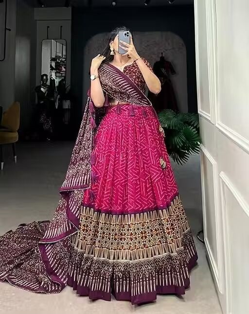 كن أول من يقيم “Women’s Collection Dolla Silk Lehenga Choli Patola Print with Foil Work With Unstitched Blouse”
