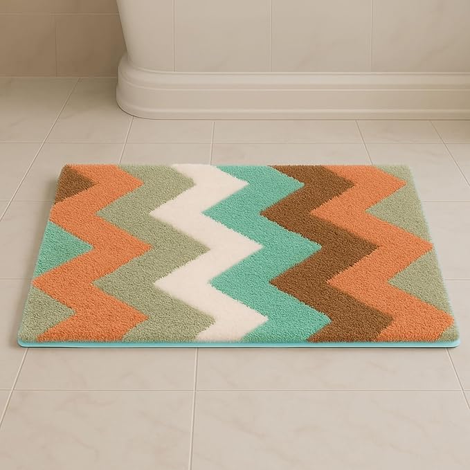 Zigzag Super Soft Anti Skid Slip Water Soak Washable Door Mats for Home, Bathroom Mat, Floor Mat, Kitchen Mat for Floor (40×60 cm) Rust