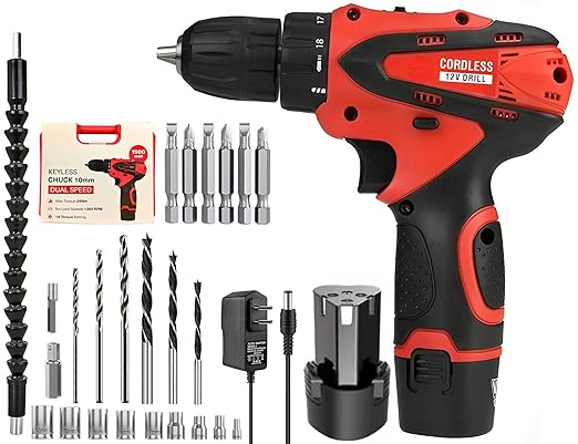 ???????????? ??????????????????????: This drill machine features a 12-volt motor with 18+1 adjustable 350In-lb torque of impact and a 2-speed gear ( 0-350 rpm for low gear and 0-1350 rpm for high gear ), which means you can complete a wide range of applications quickly and effectively.