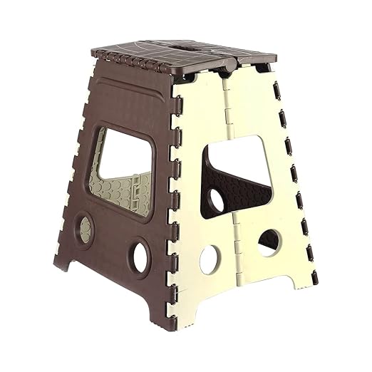 18 Inch Super Strong Folding Step Stool to Support Adults and Safe Enough for Kids. Opens Easy with One Flip. Great for Kitchen, Bathroom, Bedroom, Kids or Adults (Brown).