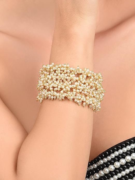 All those with an eye for good jewellery would love this clustered pearls South Indian touch bracelet. This bracelet is a must-have for every wardrobe!