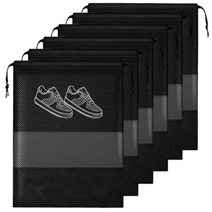 Bag for Travel Bag for Man & Women Shoe Cover for Storage at Home Gym Reusable Travelling Accessories Organizer Pouch Travel Essentials Footwear Bags for Travelling Men -Pack of 6, Black