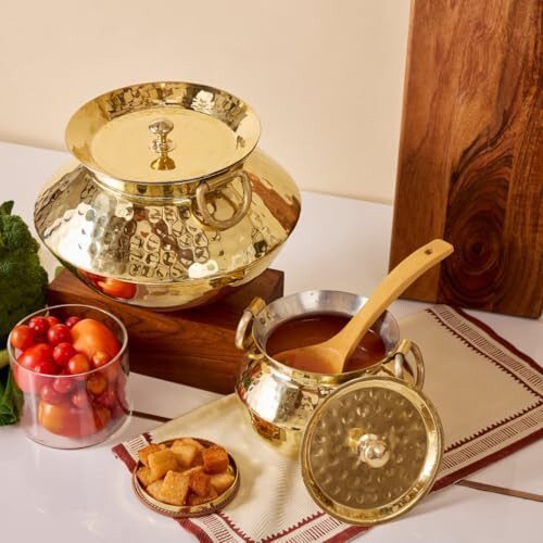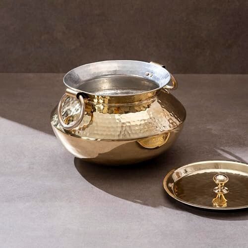 Brass Patili with Lid and Handles for Cooking Teflon Free Degchi 3L Brass