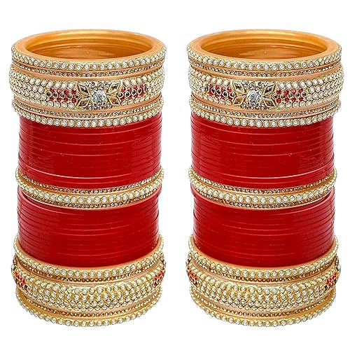 Bridal Bangle Set Dhanteras/Diwali/Bhai Dooj Collection Red Designer Chura Wedding Punjabi Choora Fashion Jewellery Chuda Set for Women (1436-M1C1-SAHAJ-R)