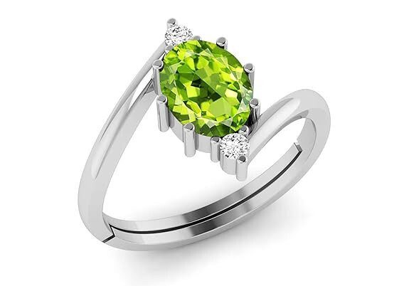 Certified Natural 5.25 Ratti 4.00 Carat Peridot Gemstone Silver Plated Adjustable Ring for Men and Women’s B09Z6SZ3ZC690