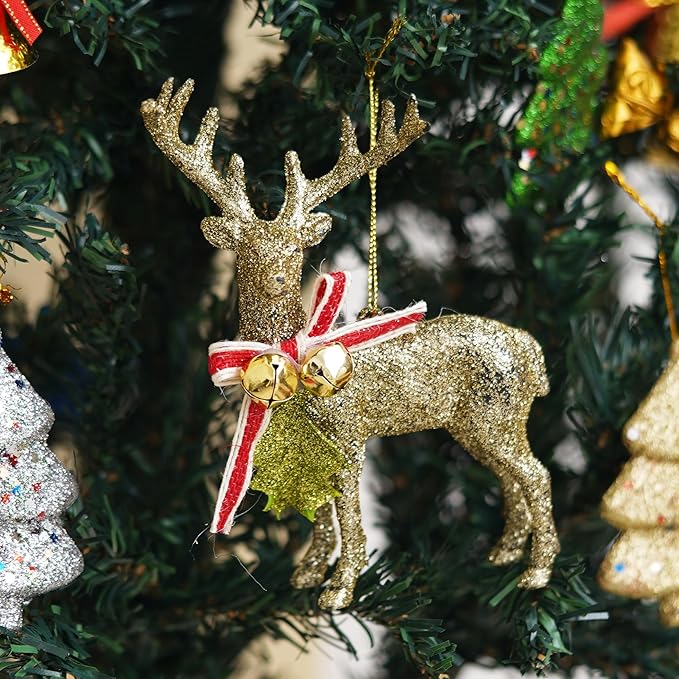 Christmas Glitter Golden Reindeer Statue | Christmas Tree Decoration Items | Christmas Hanging Ornaments Props | Christmas Decorations Items for Home Living Room Office Church D?cor