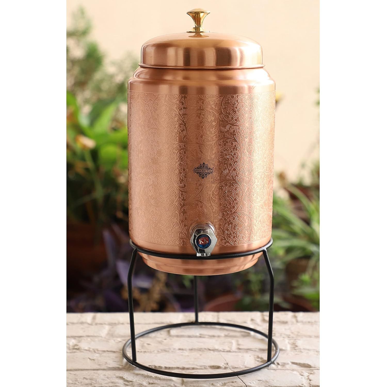 + Free ShippingCopper Water Pot, Embossed Finish Design with Brass Tap & Stand, Storage & Serving Water, Volume- 5 Liters B0BJF357T83400About this itemSpecification: