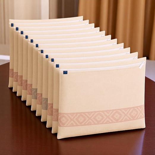 Cotton Saree Cover with Durable Mesh Window & Zipper Closure | Reusable, Washable, Breathable Saree Storage Organizer for Wardrobe or Travel Use | Multi-Purpose Clothes Bag | Pack of 12