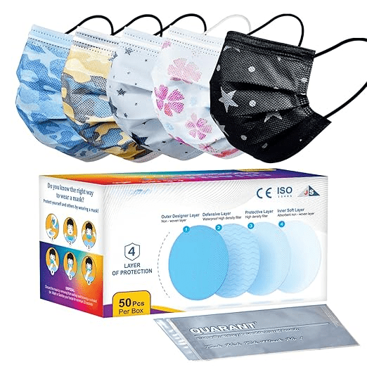 Dual SMMS Fabric 4 Ply Designer Protective Face Mask with Nose Clip and Reusable Travel Pouch, Fashion That’s Safe (Mixed Combo, Pack of 50) for Unisex
