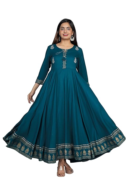 Embroidered Rayon Anarkali Kurta|Gown for Women|Flared Kurta for Women