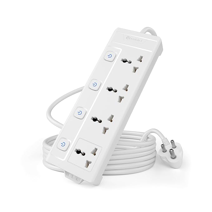 Extension Board 2500W 10A | 4 Universal Multi Plug Socket with Individual Switch | 1.8 Meter Heavy Duty Cord | LED Indicator, Power Strip & Spike Guard for Home & Office Use