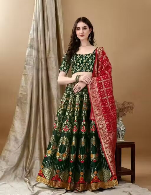 Boasting lovely floral , the new design Fashion Women?s Embroidered Semi-stitched Lehenga, Choli, and Dupatta Set gives you a feminine and charming touch. So, when you wear this set for special events, you will have the limelight.