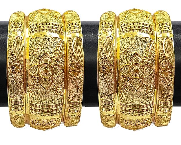 Fashion Jewellery Traditional Gold Plated Original Gold Look Bracelet Bangle Set of 6 Bangles Jewellery For Girls and Women