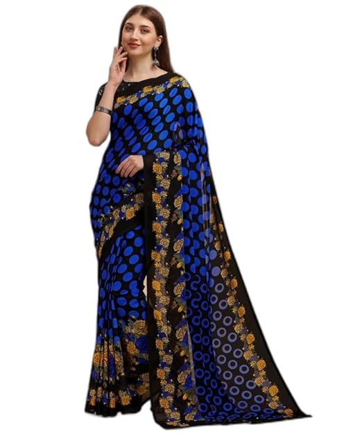 Floral Print Bollywood Georgette Saree (Blue)