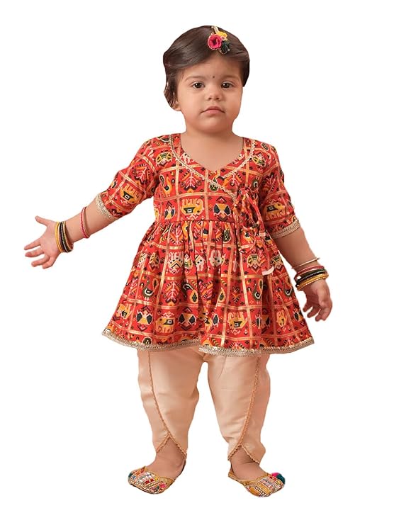 Girls Patola Print Angrakha Kurta Dhoti Set for Janmashtami – Traditional Krishna Festival Wear