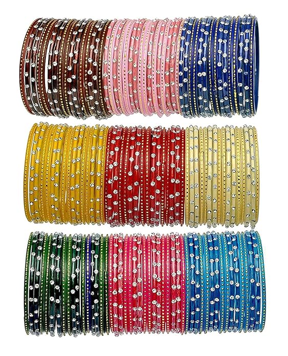 Finish Type:- Glossy ; Design Detail:- The design of this Bangle set can make your look beautiful and attractive, As the material of this Bangle set is made by very good quality material (like: Glass with Glossy Finish) and experienced we have experienced peoples, as we cannot compromise our clients with the quality of our products. ; Pack Of Details:- A Pair of 144 Bangle Set