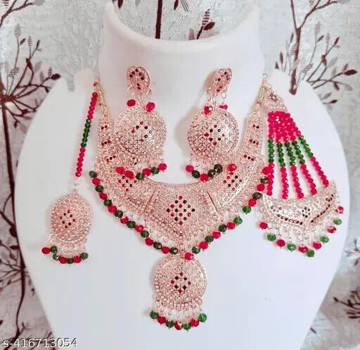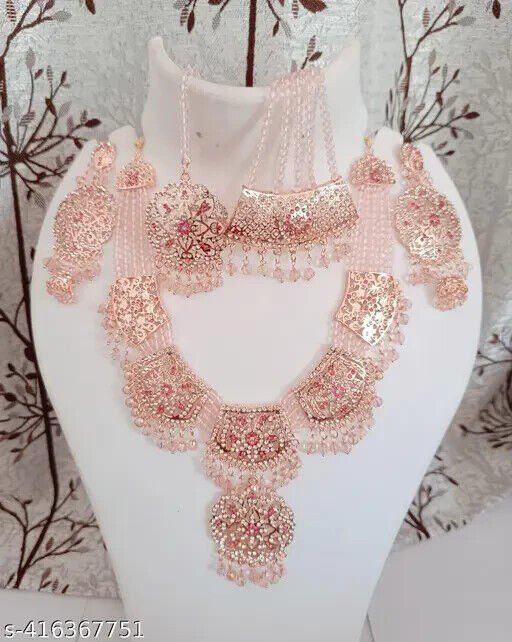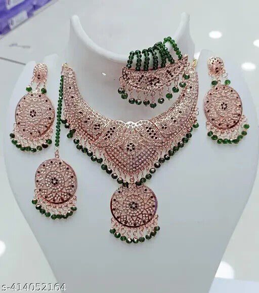 + Free ShippingName : Rose Gold Plated Jewellery Set With Crystal, Traditional Jewellery Set For Women & Girls