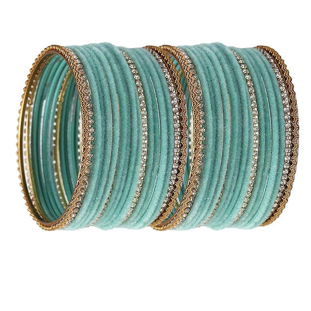 What You Get:- 36N (Set of 36) Gold-Plated Matte Finish Velvet White American Diamonds Studded Bangles, secured with Slide closure.