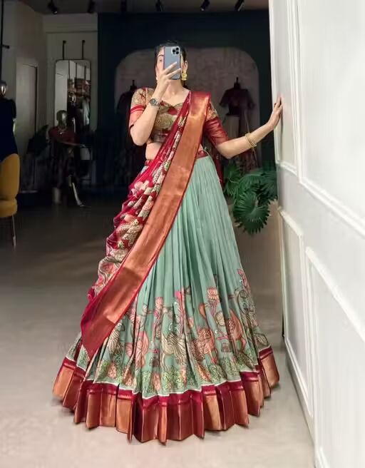 Semi Stitched (Lehenga Waist Size : 42 in, Lehenga Length Size: 42 in, Duppatta Length Size: 2.4 in)