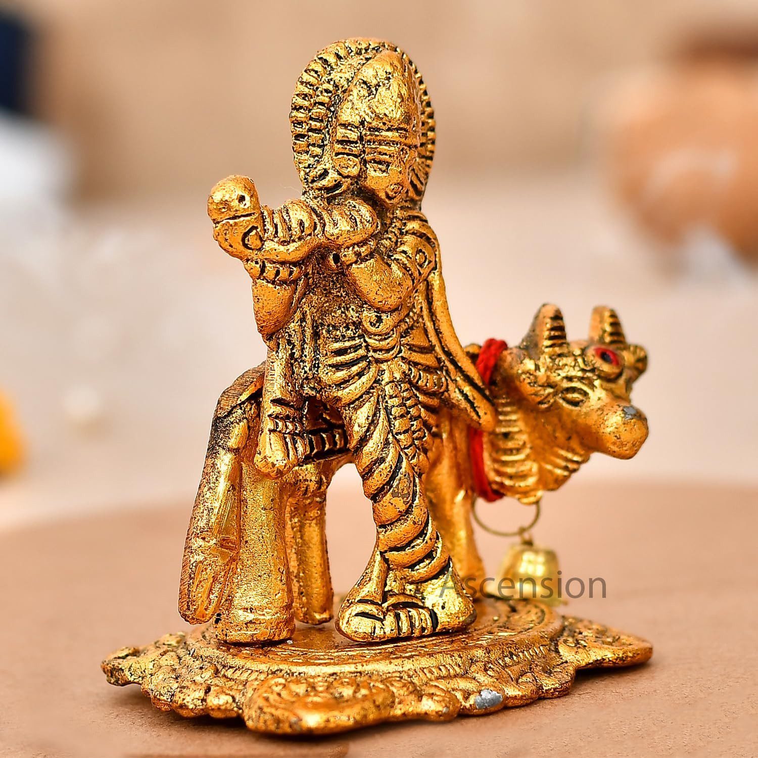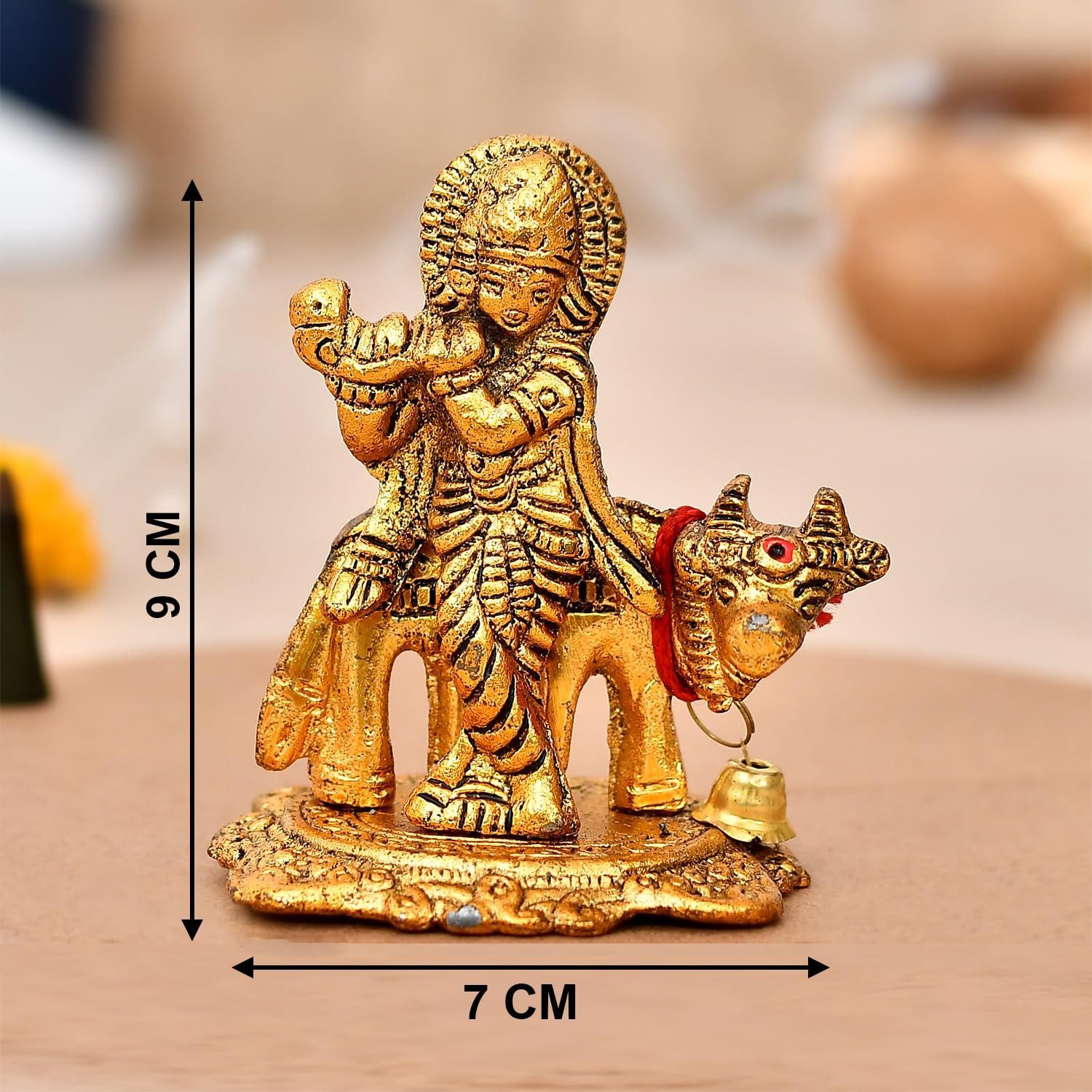 + Free ShippingHandicraft Lord Krishna with Playing Flute On Kamdhenu Cow Idol Statue Hindu God Religious Krishana Showpiece Figurine for Home Puja Decor Diwali Kris