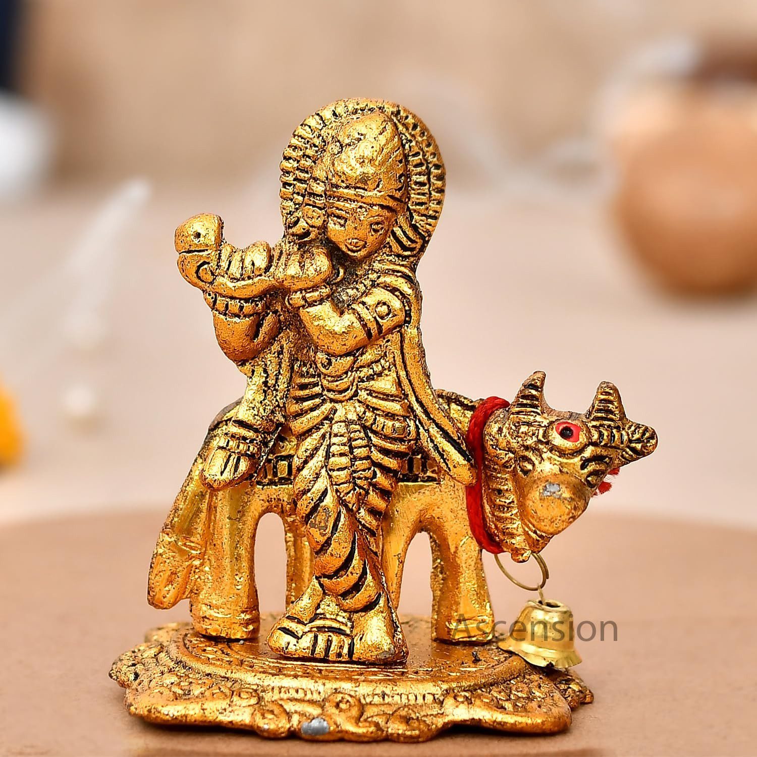 Handicraft Lord Krishna with Playing Flute On Kamdhenu Cow Idol Statue Hindu God | eBay