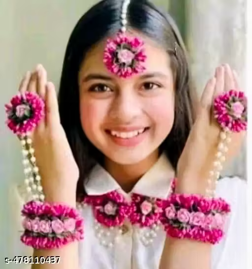 Handmade artificial flower Jewelery Mangtika with earrings Haldi jewellery | eBay