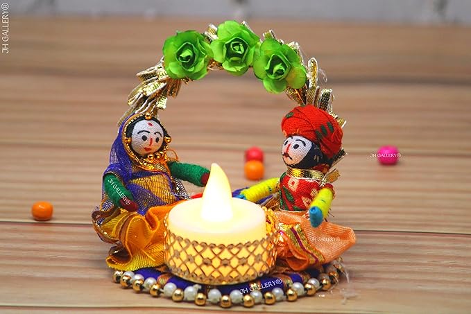 Elegant Handmade Design ? The JH Gallery Rajasthani Dolls Puppet Tealight Candle Holder features vibrant multicolor detailing, making it a stunning decorative piece for your living room, bedroom, or pooja space.