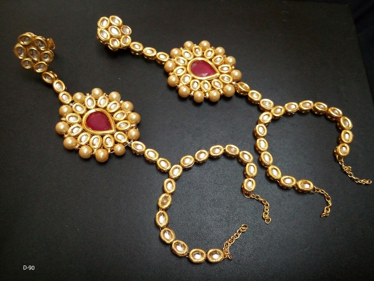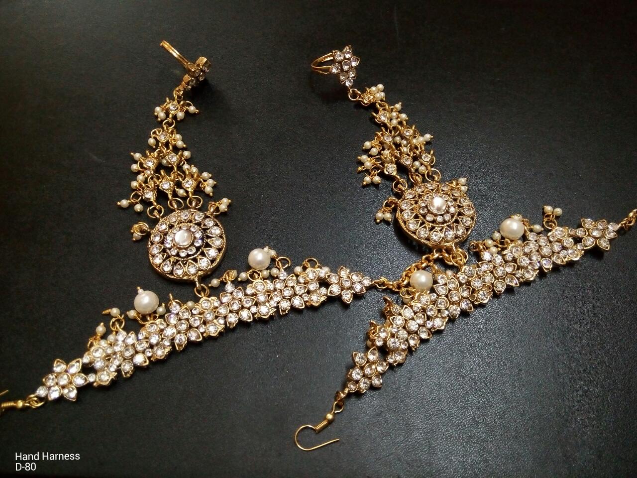 Indian Kundan Ethnic Traditional Jewelry Set Bridal Wear Hand harness hathphool