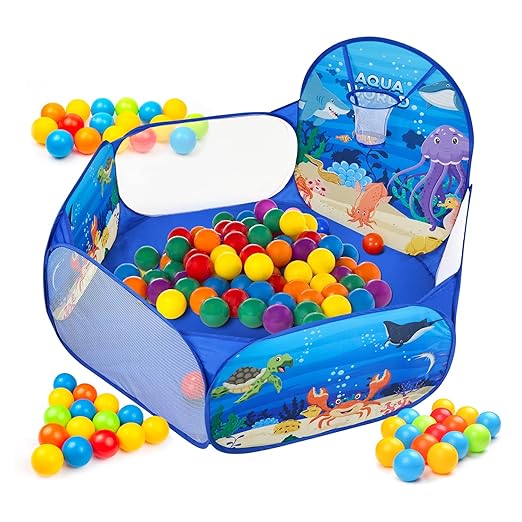 Exciting Ball Pool Sets These ball pool sets come with engaging components like a basketball hoop and foldable tent house, offering interactive play experiences for kids.