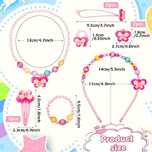 • COMPLETE COSTUME JEWELRY SET FOR LITTLE GIRLS: This fashion girls jewelry set includes everything your girls may need for styling, including one cute plush sling bag adorned with a flower; a colorful beaded headband; a butterfly ring; 2 hair clips; a beaded necklace; a bracelet; 1 pair of earrings; 2 hair ties. This set is sure to bring joy and excitement to any little girl’s collection of fashion items.