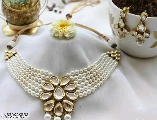 Be the first to review “Kundan and pearl necklace set with set of earrings”