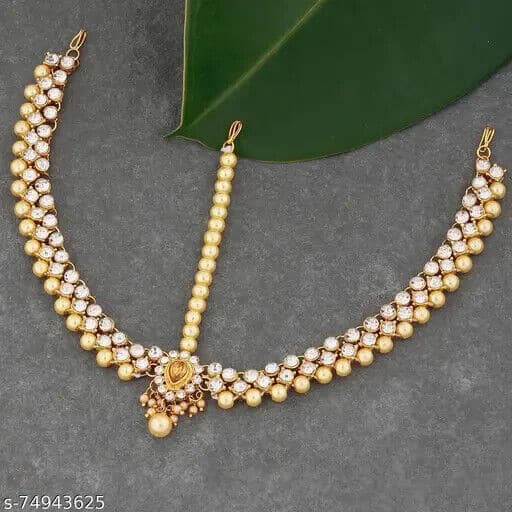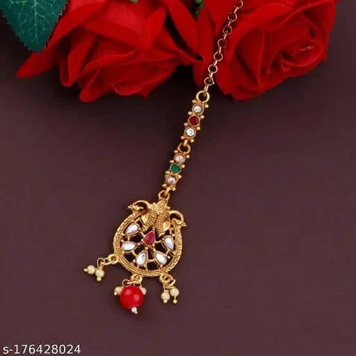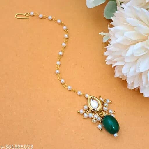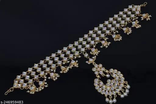 Kundan Maangtikka It is made from good quality of stone with a blend of gold plating and hence the look of the Maang Tikka is rich