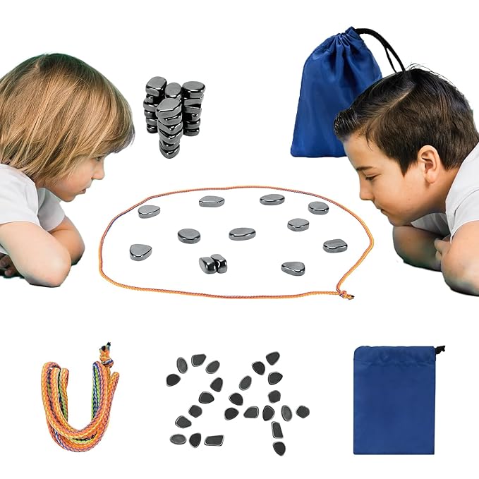 How to Play ? Arrange the rope in a specific shape, then carefully place magnets inside without letting them stick together. Players who cause magnets to stick must pick them up. The goal is to reduce the number of magnets in hand.