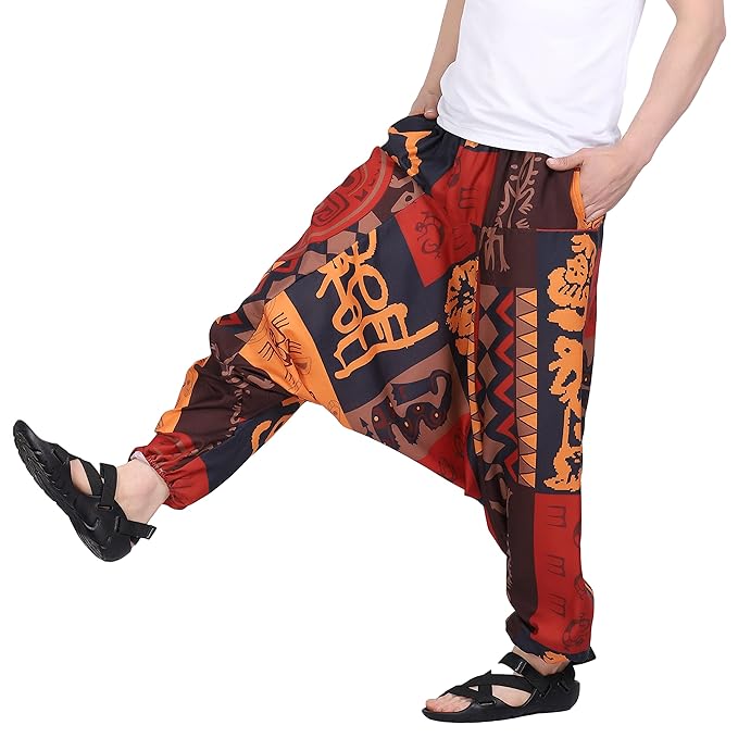 Men’s Loose Fit Cotton Trousers Printed Harem Pants for Men’s Cotton Hippie Style Baggy Boho Yoga Pajama Pant with Pocket