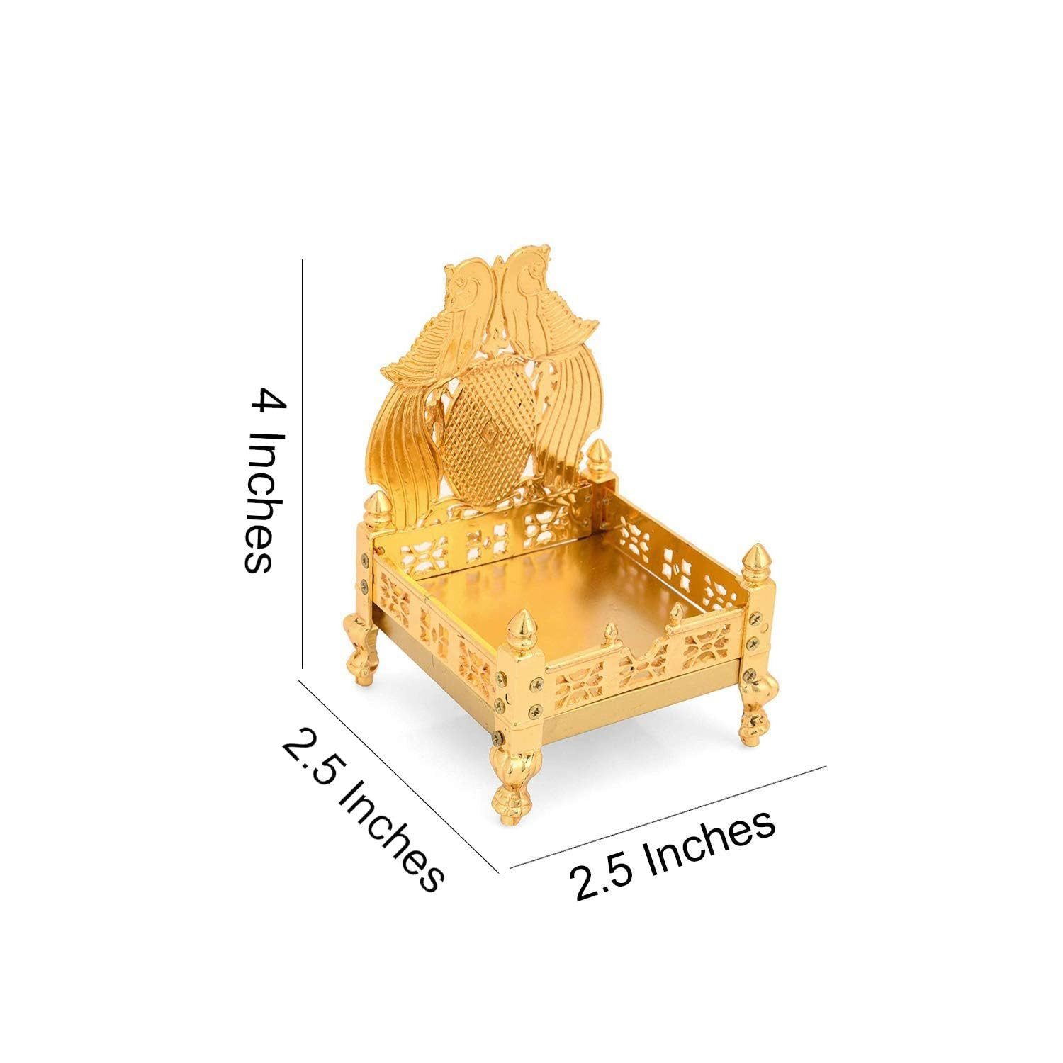 + Free ShippingMetal Gold Plated ladoo Gopal Singhasan Pooja Chowki mandir for God Thakur Puja Idol Peacock Design Decoration Items (Size 6.5 x 4 Inch) B07HLP5B3H400