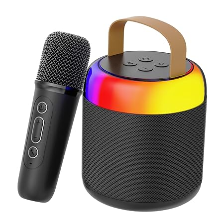 Newly Launched Fusion Bliss 16W Bluetooth Speaker with Wireless Karaoke Mic, 6Hrs Playtime, Vibrant RGB Lights, Voice Effects, Multi-Play Modes BT5.3/TF Card & Type-C Charging Port (Black)