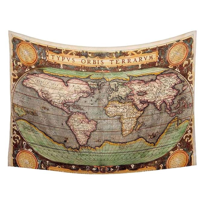 Photo of an Old Map 1587 Typvs Orbis Terrarvm Velvet Fabric Painting Tapestry | Wall Art Hanging 26.3 x 20 inch (67 x 51 cms)