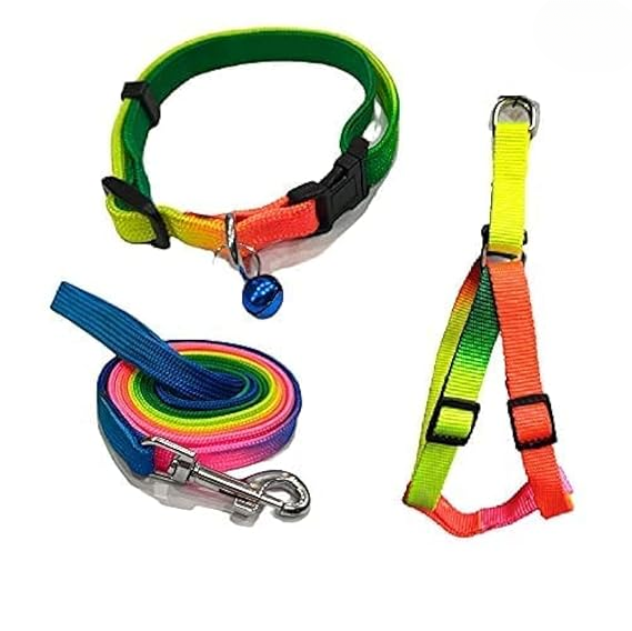 Poojavi Colourful Adjustable Nylon Puppy Leash Harness and Collar Combo, Suitable for Puppy 15 mm Multicolor (Collar + Harness + Leash) 01