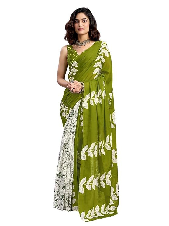 Color :: Saree Color : Green || Blouse Color : Green & White || Disclaimer : Colour Of The Actual Product May Slightly Vary Due To Different Photographic Lighting Sources Or Your Display Color Settings Or Screen Type.