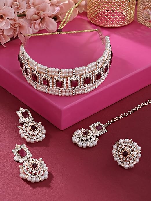 B0CFR6KCW8 Features: An intriguing jewellery set to enhance your traditional look! Beautiful color and fine detailing, handcrafted just for you! If you really want to look beautiful on all occasions creating a different look every time then you can keep one of this traditional choker set by Zaveri Pearls. Take this chance to decorate yourself with the most beautiful adornment you can ever own.