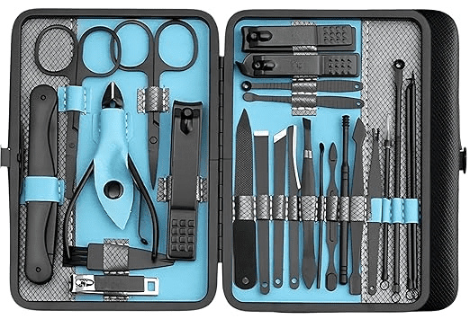 B0D22PSW1H Professional manicure kit and nail clippers set includes 25 pieces of care tools for facial care, nail care, and pedicure care which can meet all of you needs. Just enjoy the happiness of nails treatment and grooming Relax care