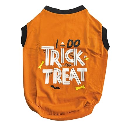 Poojavi Orange I Do Trick for Treat Printed Stretchable T-Shirts for Puppies, Kitten, Dogs and Cats (22″ XXL)
