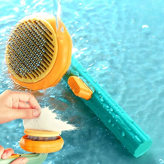 Poojavi Self Cleaning Dog Comb & Cat Comb – Pet Hair Remover Grooming Comb with Switch & PAIN – FREE Slickers | Deshedding Dog Brush & Cat Brush To Gently Massage The Pets with FREE Bath Brush