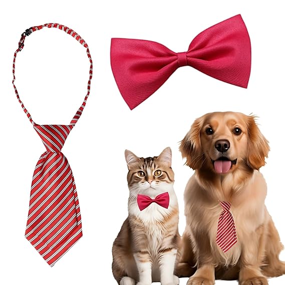 Stylish Tie & Bow Tie Combo: Add a touch of charm and elegance to your dog?s look with this combo featuring a classic tie and an adorable bow tie, perfect for any occasion.