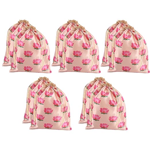 ? PACKAGE CONTAINS : 10 Piece Potli Bags | Lotus Print | MATERIAL : Polyester | PRODUCT DIMENSION : 19 cm x 1 cm x 25 cm