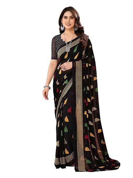 Premium Georgette Fabric: Crafted from high-quality georgette material, this saree ensures a lightweight and breathable experience, offering a soft texture and flowy drape that gracefully enhances your silhouette for a luxurious and polished appearance