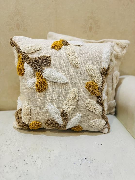 Premium Decorative Throw Cushion Pillow Cover Boho Home Decor – Living Room Bedroom Couch Sofa Cushion Covers 16 inch x 16 inch (2, Cream Leaves)