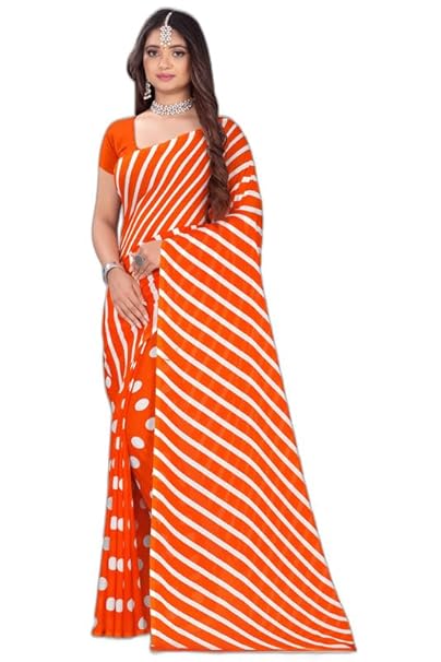 Printed Bollywood Georgette Saree for Women With Unsticted Blouse Peice (Orange)