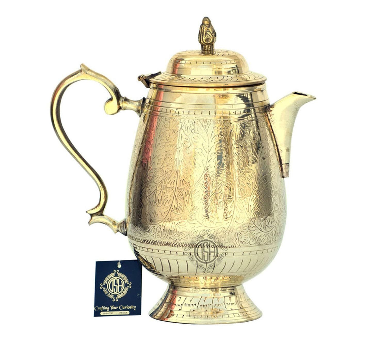 Pure Brass Water jug Oval Shaped with Lid (1400 ml Gold) for Storage & Serving W | eBay